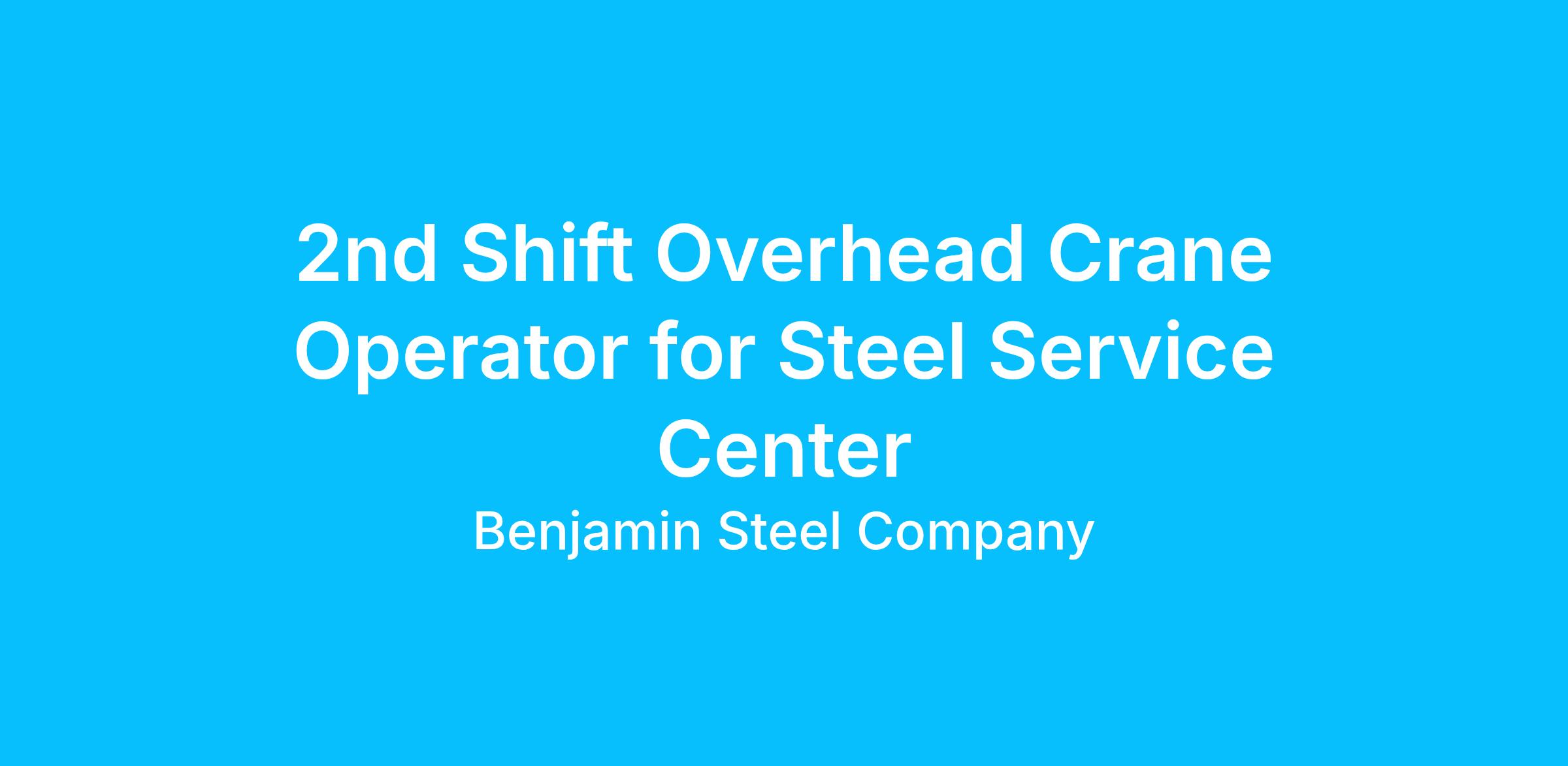 2nd Shift Overhead Crane Operator for Steel Service Center