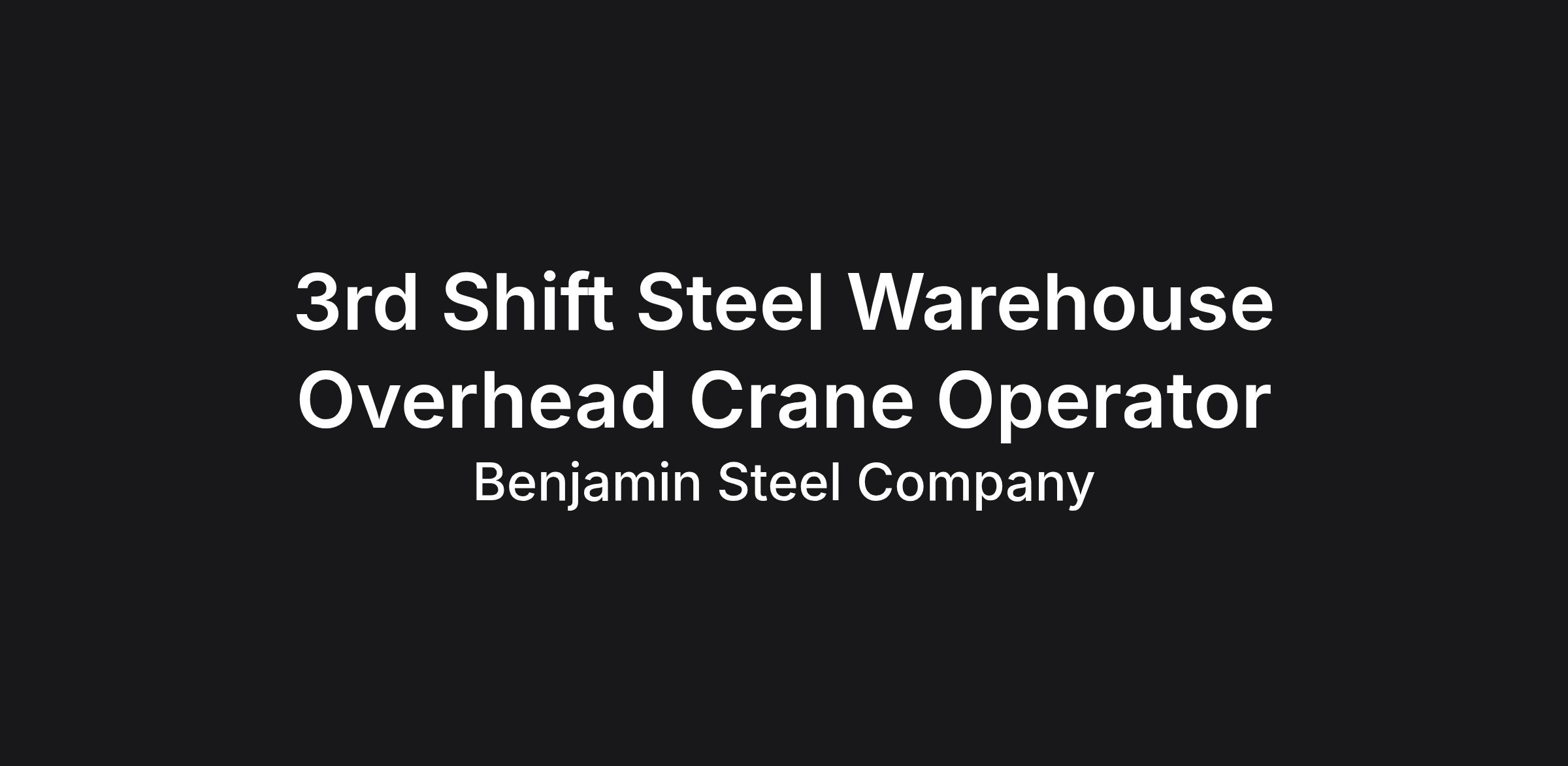 Overhead crane and forklift experience preferred.