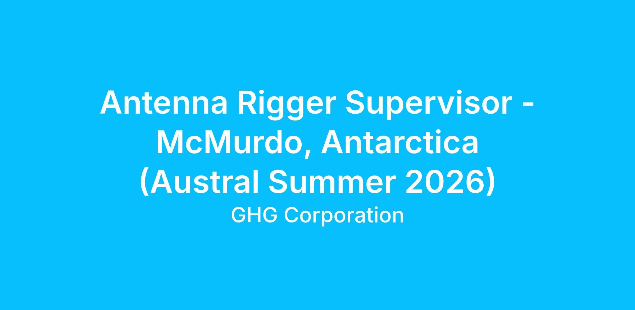 Responsible for team development, technical leadership, and supervision of the Antenna Rigging Program, from planning through the safe execution of installation and maintenance of all guyed towers, freestanding towers and antenna support structures in the USAP. The Rigging Supervisor also provides guidance and assistance to install and maintain necessary coaxial cable, connectors on coaxial cabling, maintenance and repairs of antenna radomes. Also coordinates installation and maintenance of various solar and wind turbine power generation sites. Responsible for developing and tracking project plans and timelines. This position requires both technical and managerial skills.