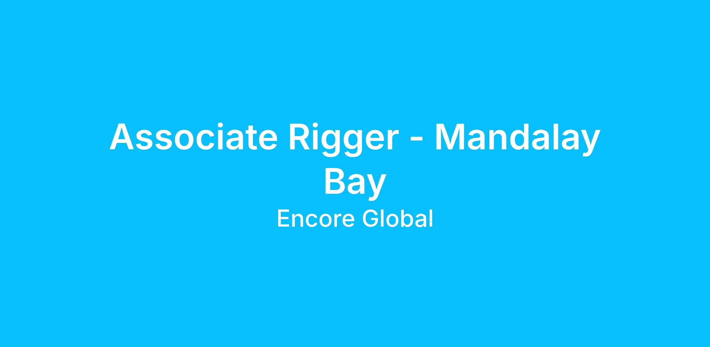 The Associate Rigger is responsible for performing rigging activities in a Hospitality or convention center environment while upholding safety and quality standards per all trade, Encore/property guidelines and SOP’s. This position reports to the Rigging Manager.