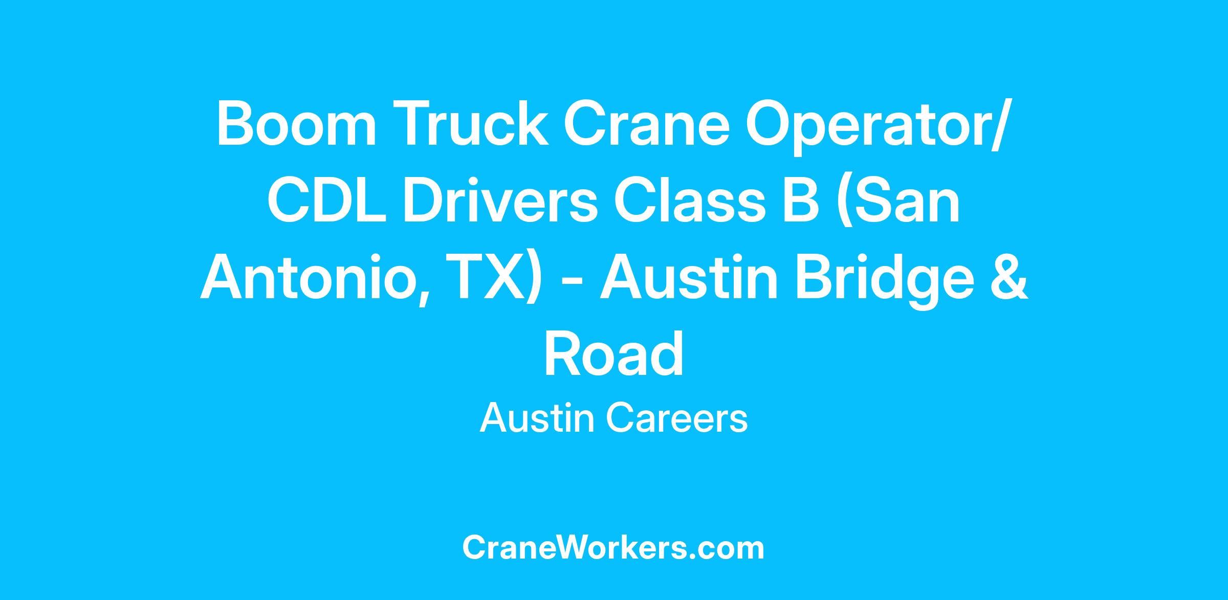 Austin Bridge & Road is currently seeking Boom Truck Driver CDL Drivers Class B. with a Crane Certification. We excel at what we do and are looking for talented construction professionals that want to excel with us.