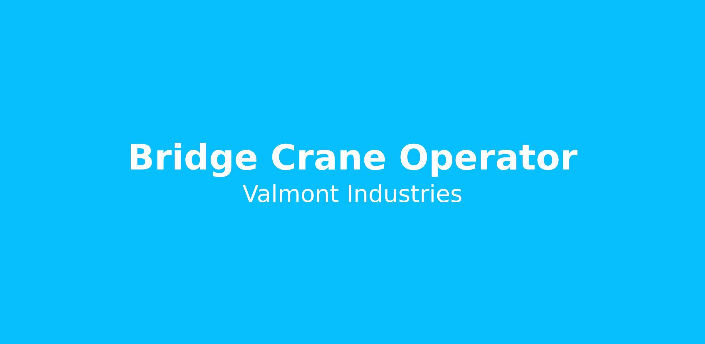Valmont is currently seeking a highly motivated and talented individual for the Bridge Crane Operator position in the Global Coatings Division. We are looking for a highly driven individual that will operate the galvanizing department’s 15-ton overhead bridge crane in a safe and effective manner to ensure high quality finished product.