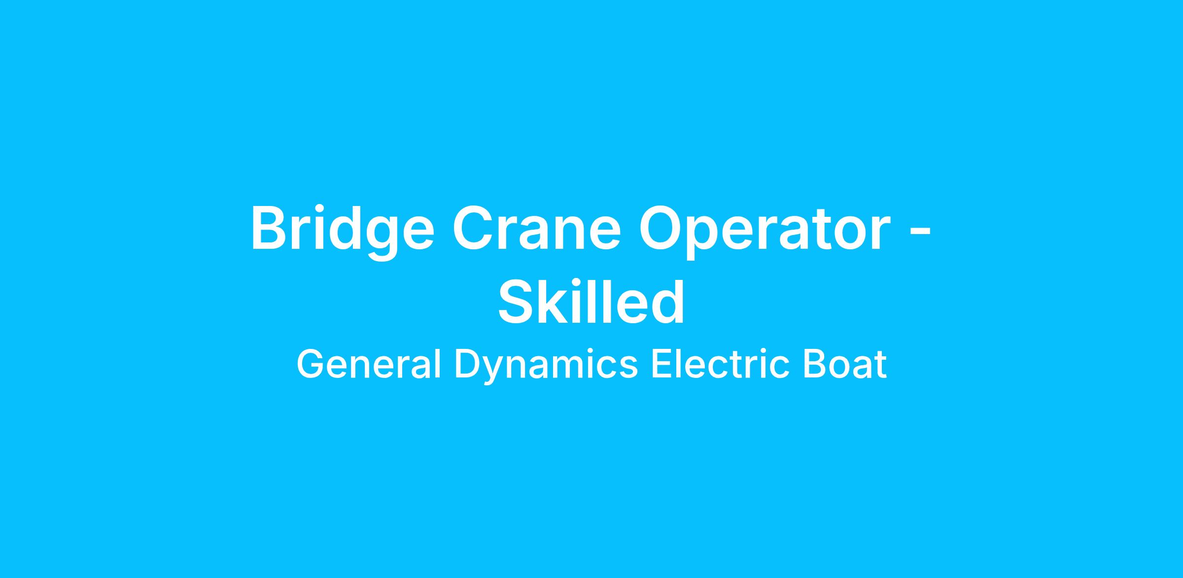 Candidates must be able to pass Electric Boat crane operators physical examination. Applicant must be able to work at various heights or in confined spaces. Electric Boat overhead bridge cranes range in size from 5 ton to 280 ton with multiple crane blocks.