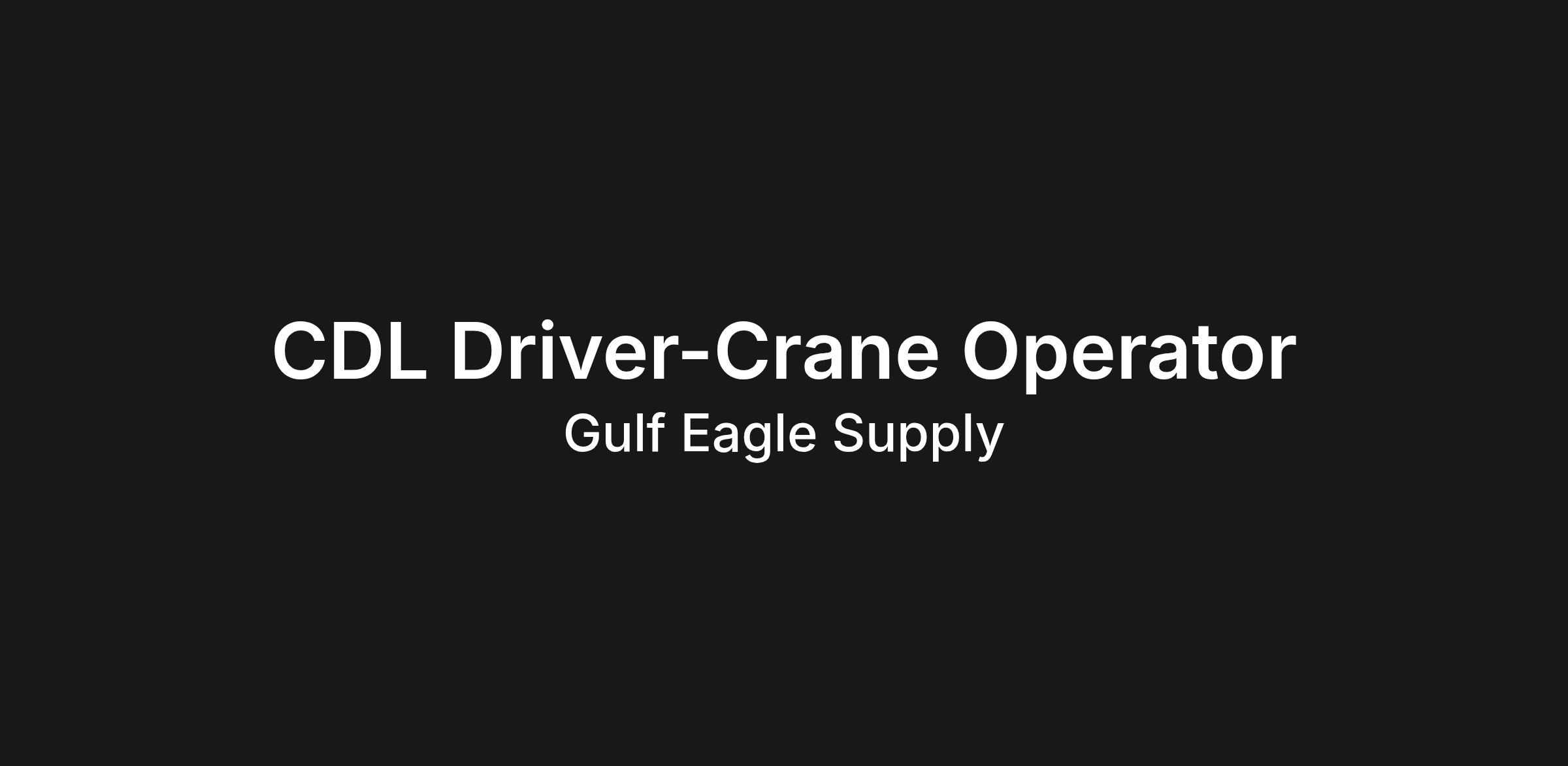 If you are a driver looking to establish a career with one of the top Building Supply Distributors Nationwide, then Gulfeagle has the job for you. Our drivers are responsible for safely driving the most efficient route to the job site, while observing and obeying all traffic laws and safety regulations as well as company policies/procedures. They assist in loading and/or securing materials on trucks daily and help unload materials by using crane, conveyor, piggybacks and/or by hand. Gulfeagle drivers are the face of our Company on the jobsite as they lead, instruct, and supervise others.We take pride in delivering the highest quality and best value to our customers and would be pleased to make you a part of that mission. Here at Gulfeagle we are "Building a Career for YOU"Requirements: