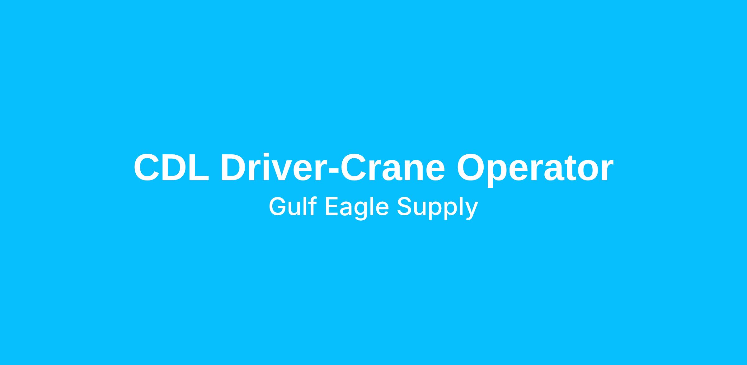 If you are a driver looking to establish a career with one of the top Building Supply Distributors Nationwide, then Gulfeagle has the job for you. Our drivers are responsible for safely driving the most efficient route to the job site, while observing and obeying all traffic laws and safety regulations as well as company policies/procedures. They assist in loading and/or securing materials on trucks daily and help unload materials by using crane, conveyor, piggybacks and/or by hand. Gulfeagle drivers are the face of our Company on the jobsite as they lead, instruct, and supervise others.We take pride in delivering the highest quality and best value to our customers and would be pleased to make you a part of that mission. Here at Gulfeagle we are "Building a Career for YOU"Requirements: