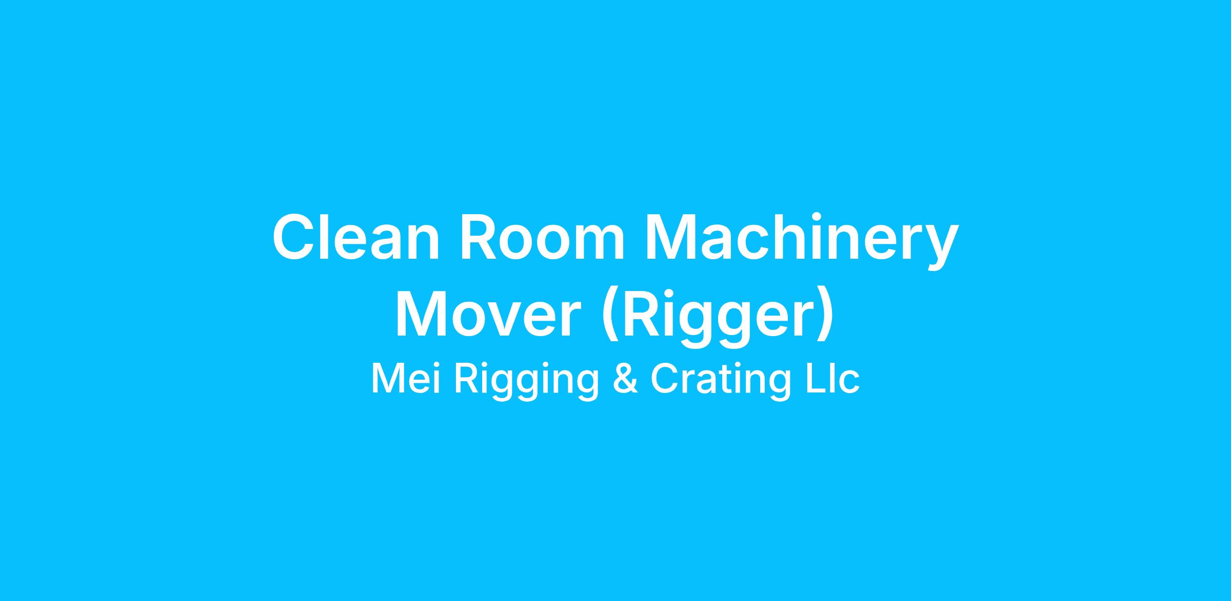 Disclaimer: This job description is intended to summarize the type and level of work performed by a Clean Room Machinery Mover/Rigger and is not an exhaustive list of all duties, responsibilities, and/or requirements. MEI reserves the right to change or modify this job description or the essential duties of Clean Room Machinery Mover/Rigger, as necessary.
