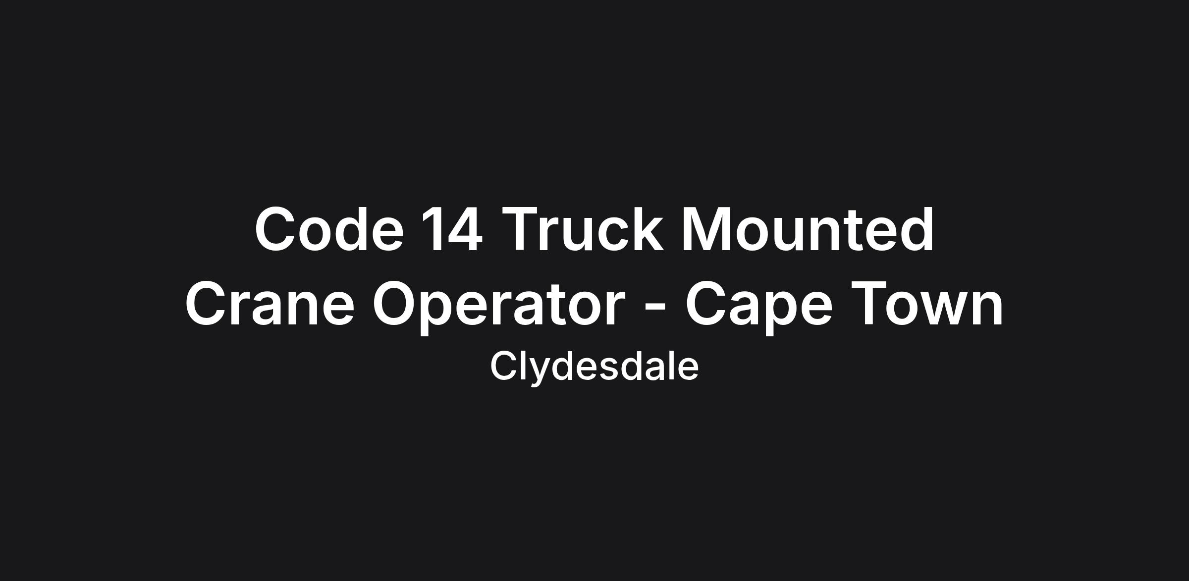 We are looking for a skilled and safety-conscious Code 14 Crane Truck Operator to join our growing team.