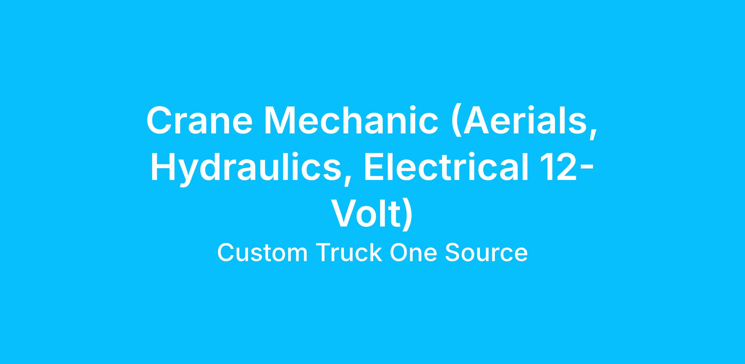 The Crane Mechanic specializing in aerials, hydraulics, and 12-volt electrical systems plays a critical role in ensuring the safe and efficient operation of cranes used in durable goods manufacturing. This position involves diagnosing, repairing, and maintaining complex mechanical and electrical components to minimize downtime and extend equipment lifespan. The mechanic will work closely with production teams to troubleshoot issues, perform preventative maintenance, and implement upgrades or modifications as needed. Attention to detail and adherence to safety standards are paramount to protect both personnel and equipment. Ultimately, this role supports continuous manufacturing operations by maintaining crane functionality and reliability at the highest standards.