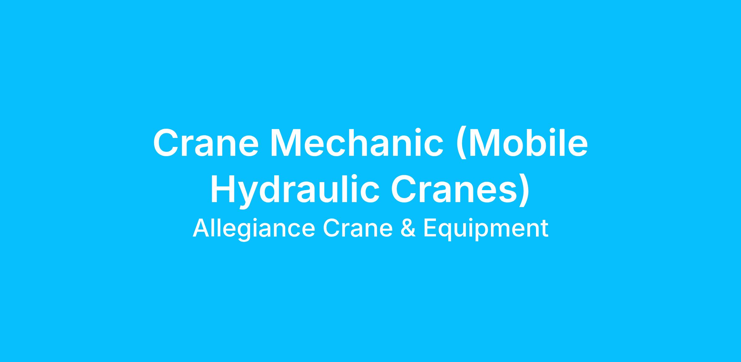 Allegiance Crane & Equipment is seeking top level mechanics to service mobile cranes & equipment in our Tampa, FL location. Allegiance is a top employer for mechanics & technicians! Come join our growing, stable organization!