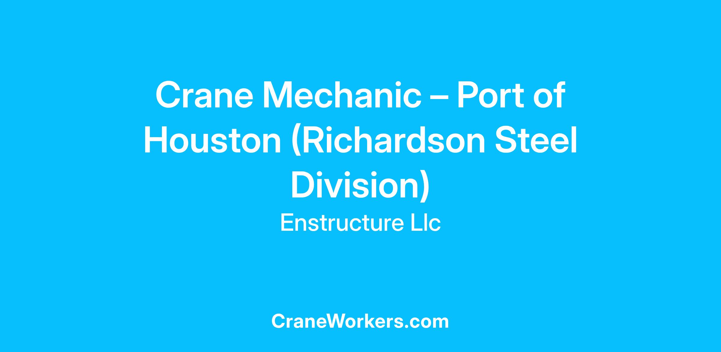 Company Overview: Enstructure LLC is a leading provider of marine terminal and logistics services, committed to delivering exceptional service and operational excellence. Our Houston terminal is a key hub in our national network, and we are seeking a dependable and proactive Crane Mechanic to join our team.