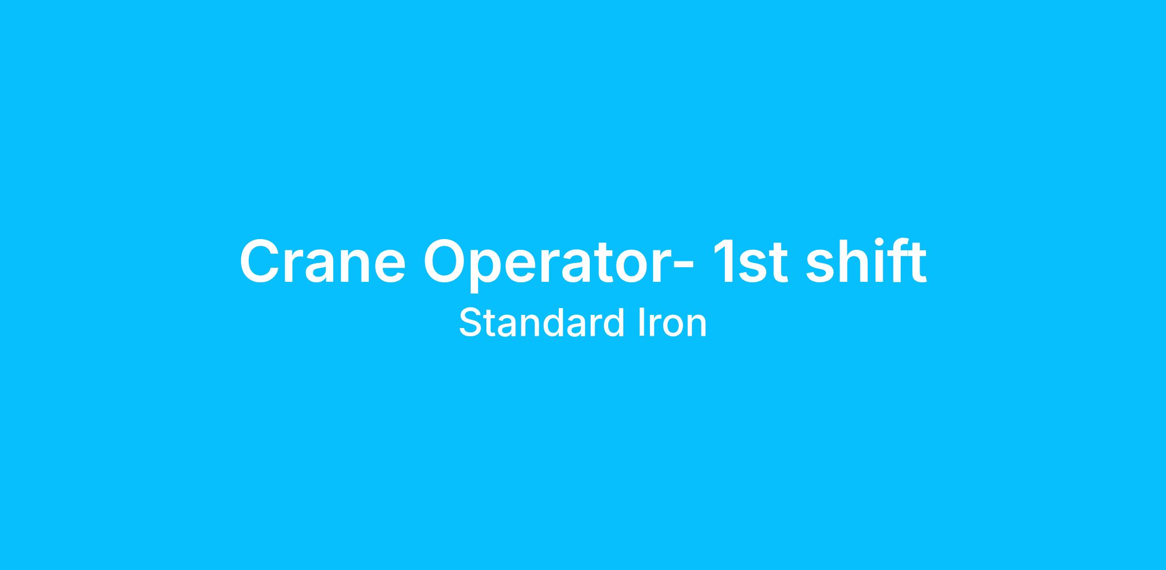 Overhead Crane Operator Monday – Thursday | 6:00A-4:30P | 4-Day Work Week Standard Iron has been a leader in contract manufacturing for over 90 years, and we continue to grow by hiring talented individuals who share our Core Values of Safety, Respect, Pride in Work, and Continuous Improvement.