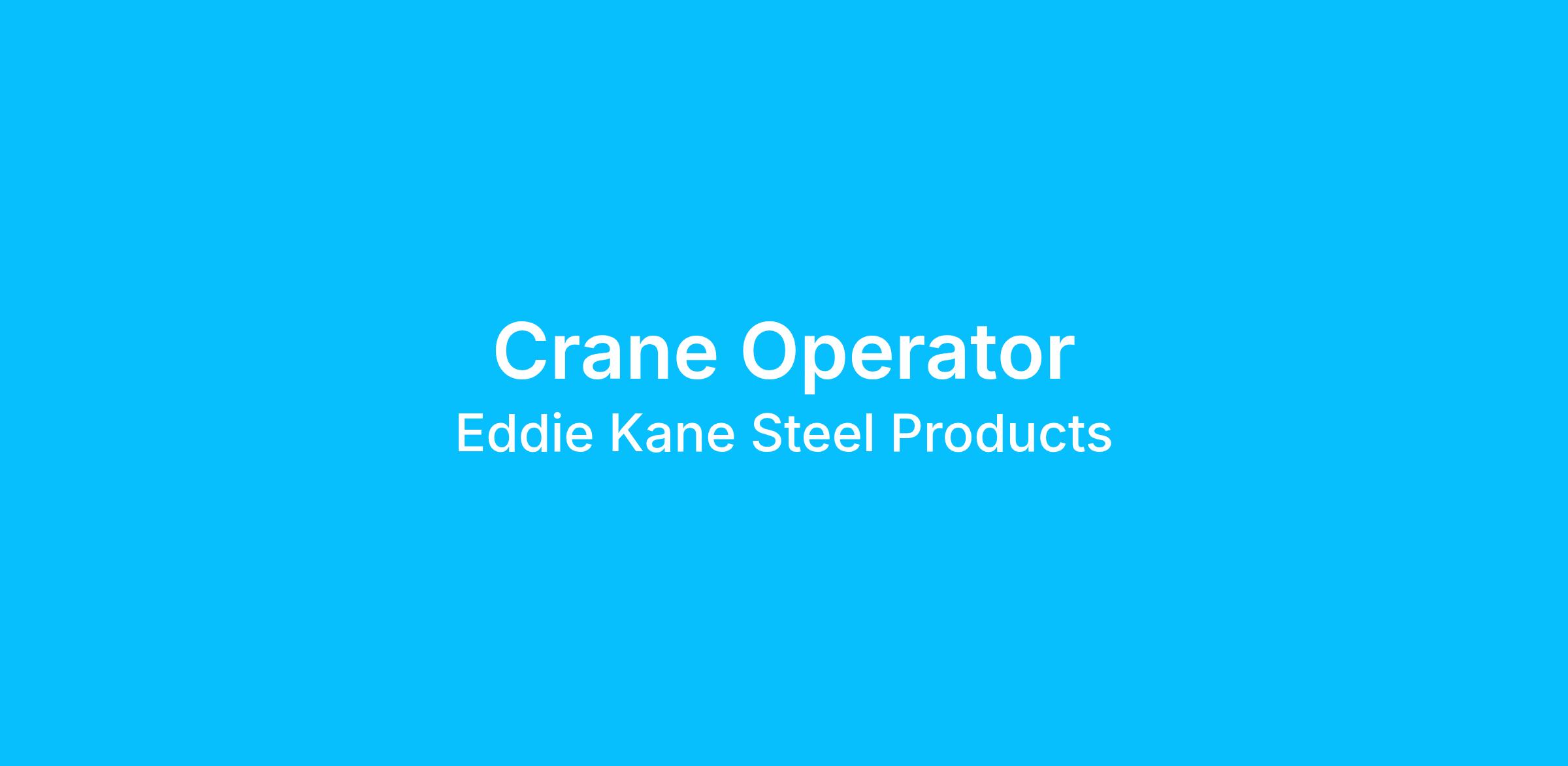 Eddie Kane Steel Products has been a family owned and operated business providing exceptional service in the steel industry for over 26 years. The company motto has always been to "Treat others as you would have them treat you" and we are in search of a full-time Crane Operator.