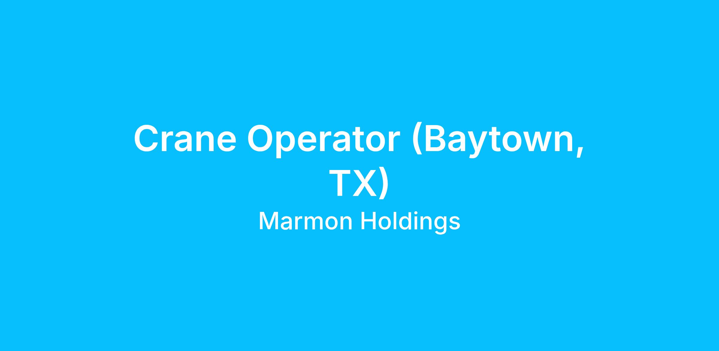 Crane Operator - (Baytown, TX)The crane operator is required to safely operate cranes efficiently and maintain a standard of accuracy that aligns with the company procedures and customer requirements.