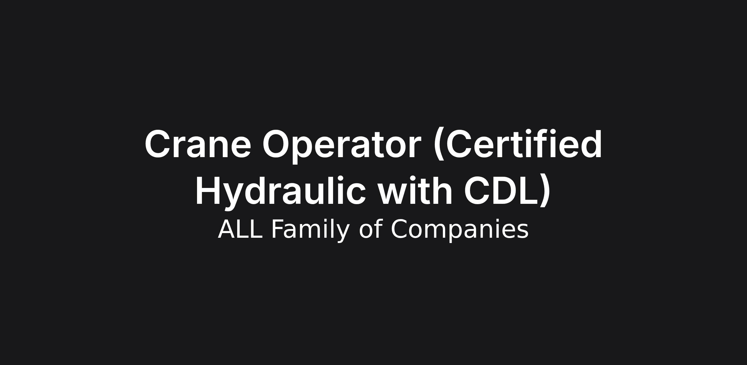 ALL Crane Rental of Louisiana, located in Geismar is hiring a certified hydraulic crane operator with a Class-A CDL to run a 275 ton AT. This is a full-time, non-exempt position with comprehensive benefits package. This position is eligible for a $300 sign-on bonus payable after 100 days of continuous employment.
