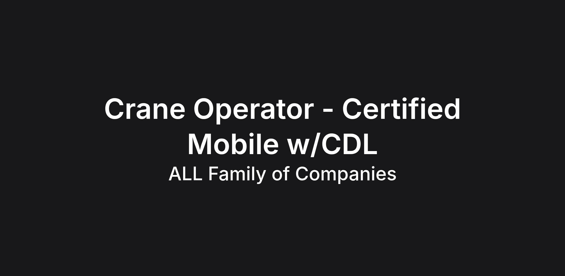 Crane Operator - Certified Mobile w/CDL