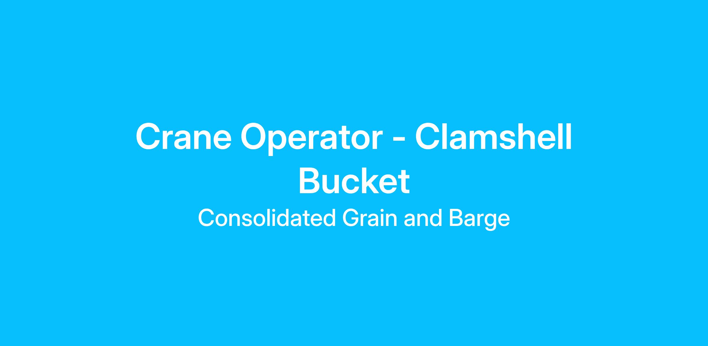 Do you have experience operating a Clamshell Bucket Crane? Do you enjoy working outdoors and on the water? If so, this may be a great opportunity for you! Cooper Consolidated offers a competitive pay rate, overtime opportunities and a great benefits and 401K package!In this job, you will: