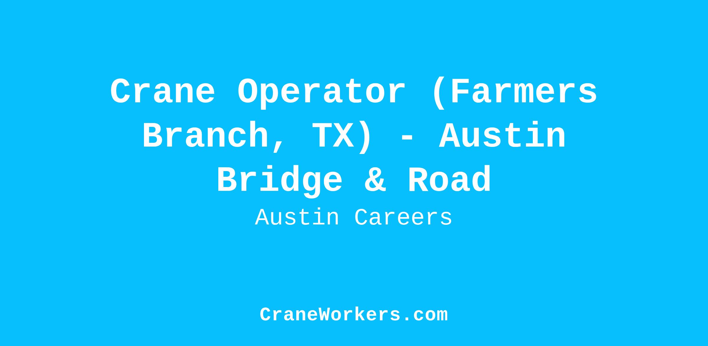 Crane Operator (Farmers Branch, TX) - Austin Bridge & Road