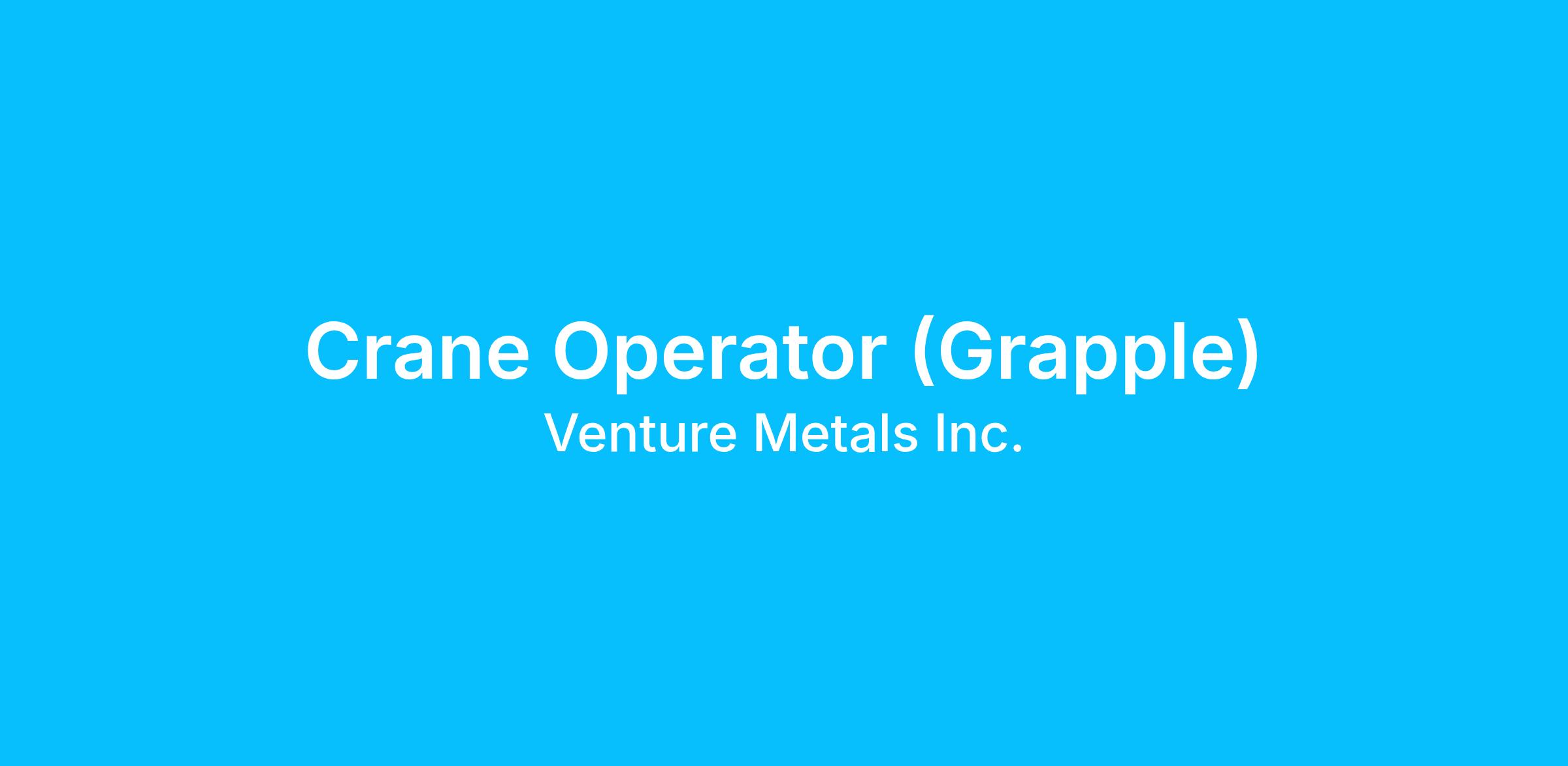 Venture Metals + is a fast-growing, metal recycling company looking to grow our team with a Crane Operator (Grapple Cranes) at our Ryan Rd, TX Location.