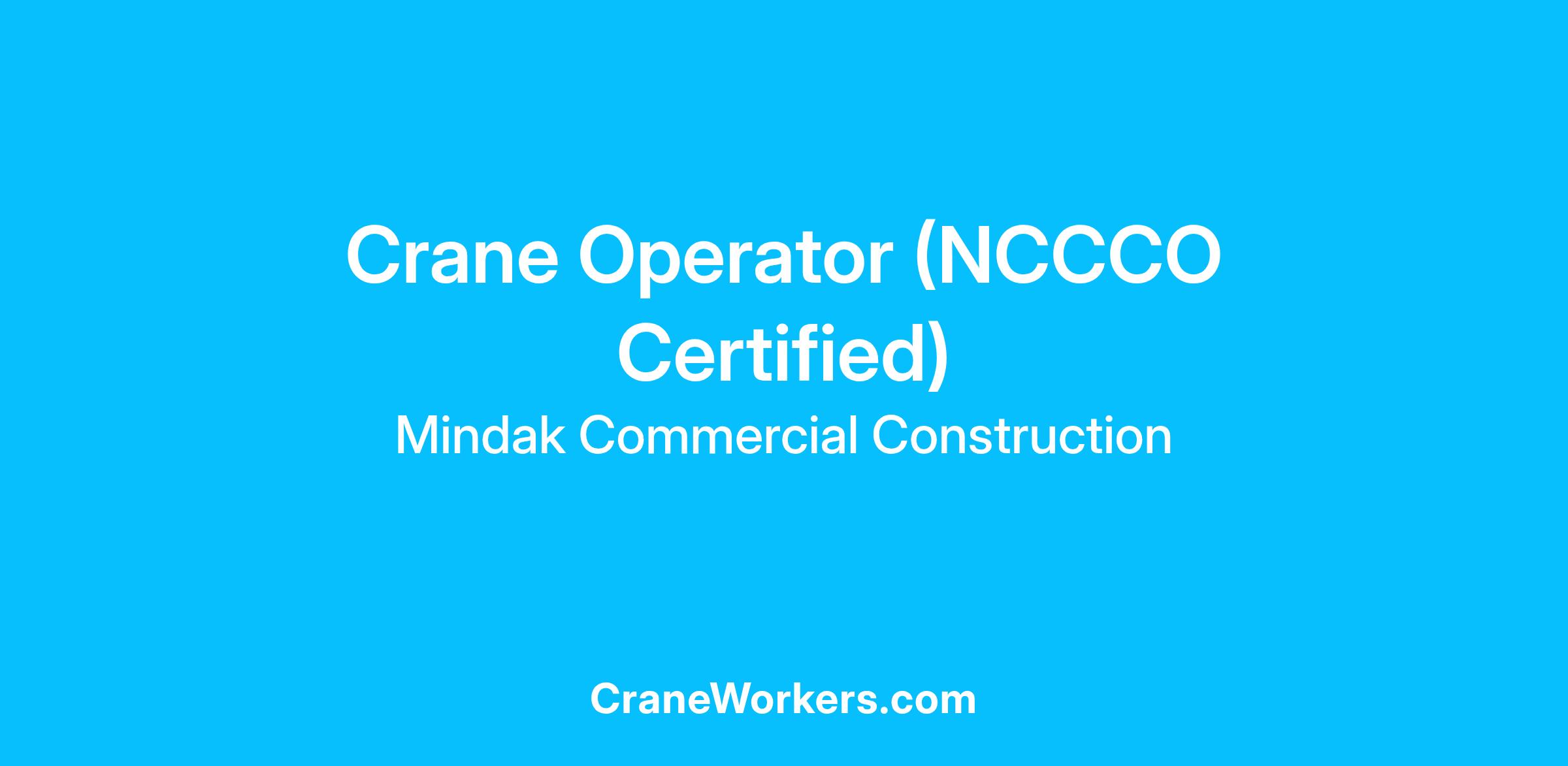 Crane certification required (NCCCO preferred; Mindak will pay for certification if you have strong mini-tower crane experience)