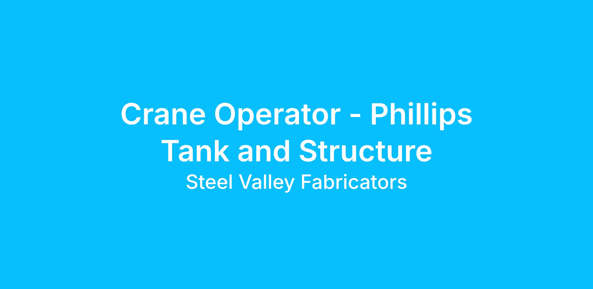 Phillips Tanks and Structure located in Columbia, KY is looking for a Crane Operator to join its growing team.