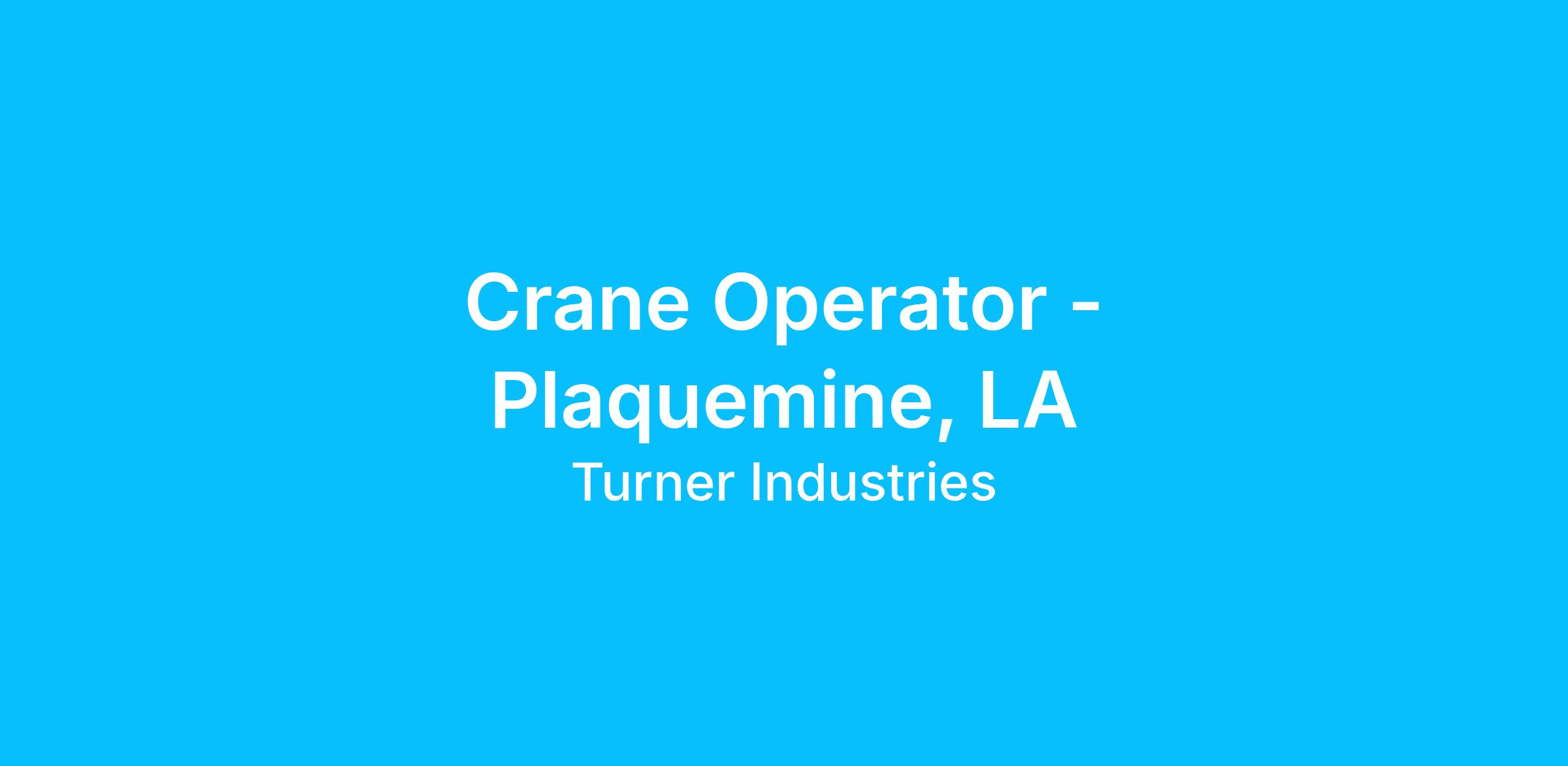 We are seeking Crane Operators for a position in Plaquemine, LA. This position operates an overhead crane to move objects, components and material. Non-exempt role; Reports to the Foreman; Assigned duties according to specific procedures / work is checked frequently.