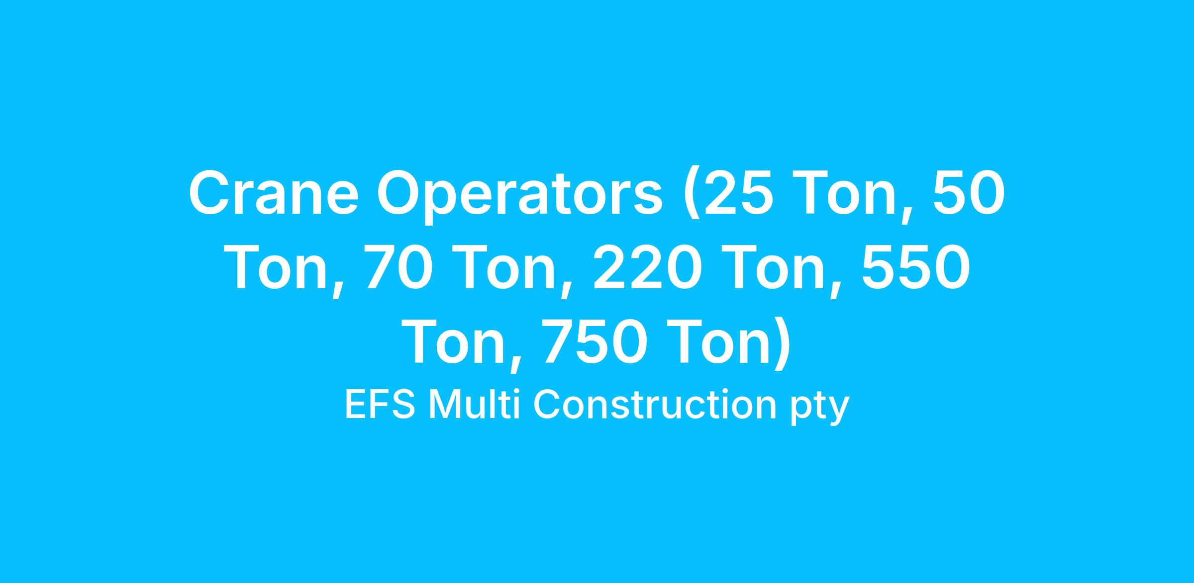 We are currently seeking experienced and safety-driven Crane Operators to join our team on site. The successful candidates will be responsible for operating cranes to lift, move, position, and place materials safely and efficiently in a fast-paced construction/mining environment.