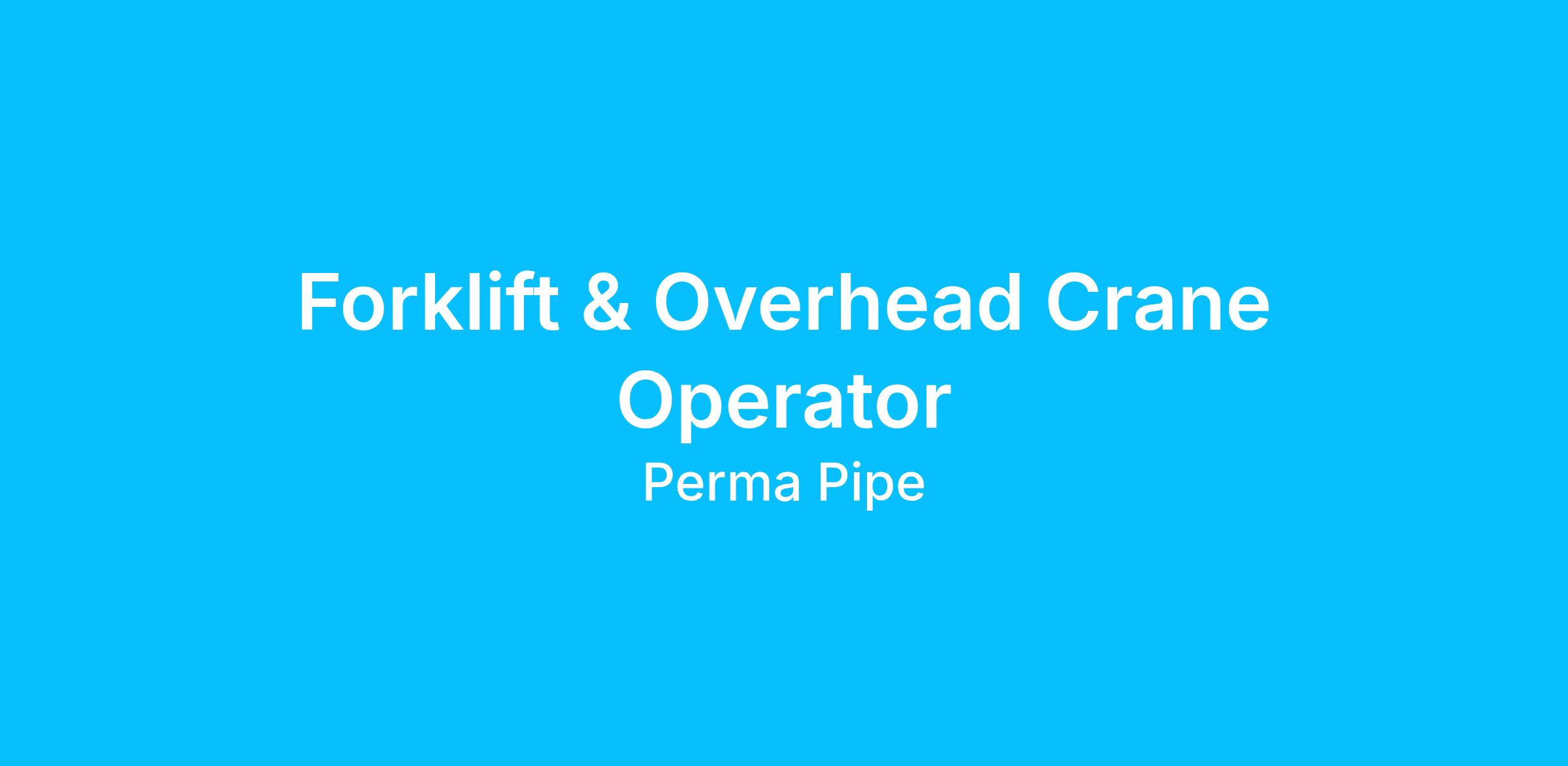 DescriptionPerma-Pipe in Hebron, OH is looking for Forklift & Overhead Crane Operators