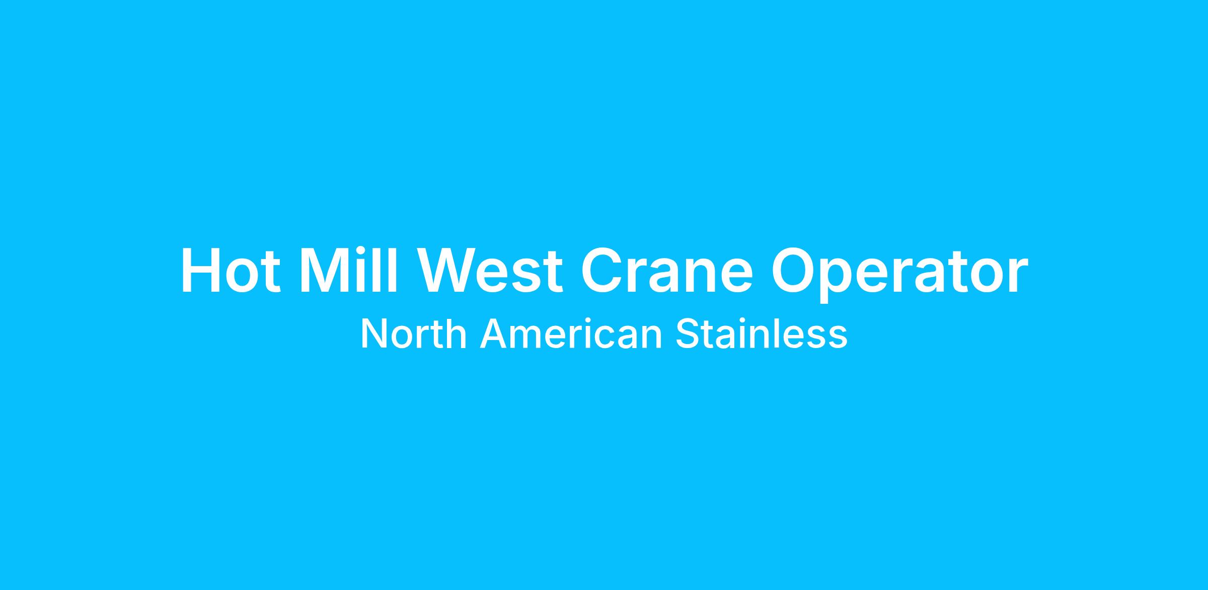 This position of West Crane Operator is responsible for all operating functions as listed below.