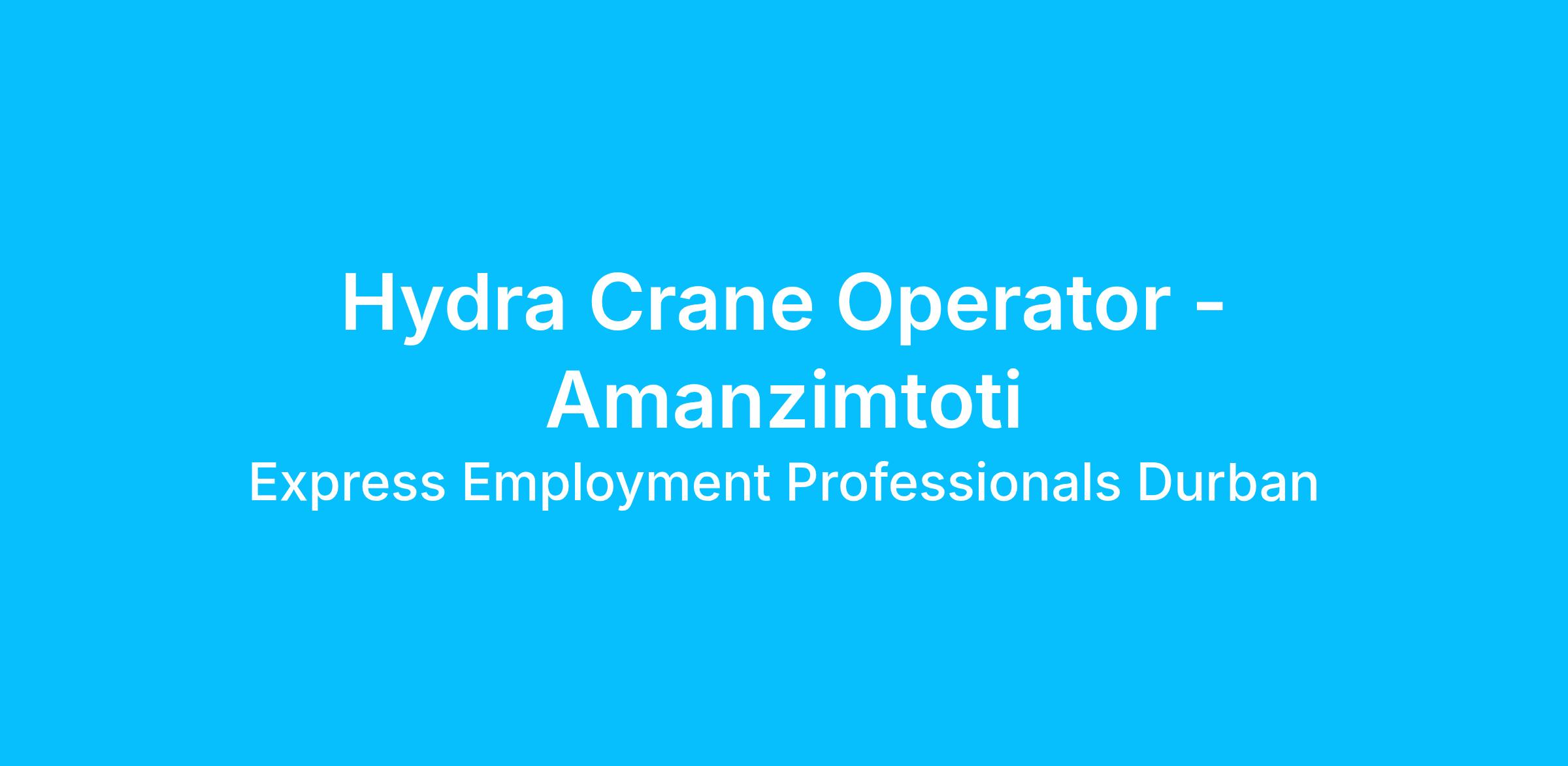A client is urgently seeking for 2 Hydra Crane Operators to start immediately.