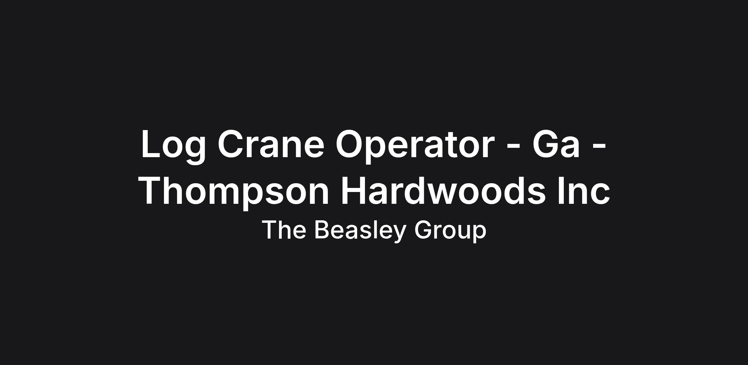Log Crane Operator - Ga - Thompson Hardwoods Inc
