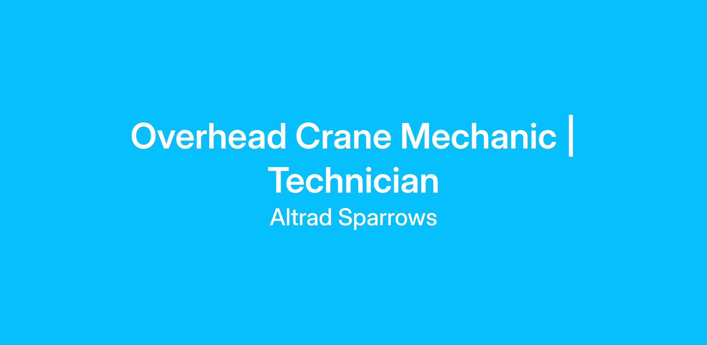 - Experience: Proven background in overhead crane maintenance and repair.
