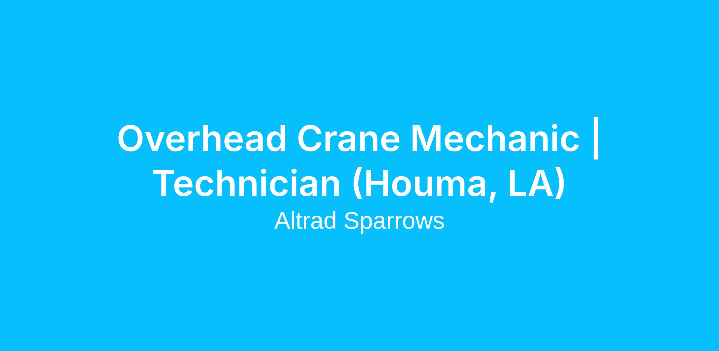 #LI-TF1 #Hiring #NowHiring #OverheadCraneMechanic #CraneMaintenance #IndustrialJobs #MaintenanceJobs #EnergyJobs #EngineeringJobs #MechanicalJobs #ElectricalJobs #HydraulicTechnician #SkilledTrades #ApplyNow #JoinOurTeam #AltradSparrowsJourney