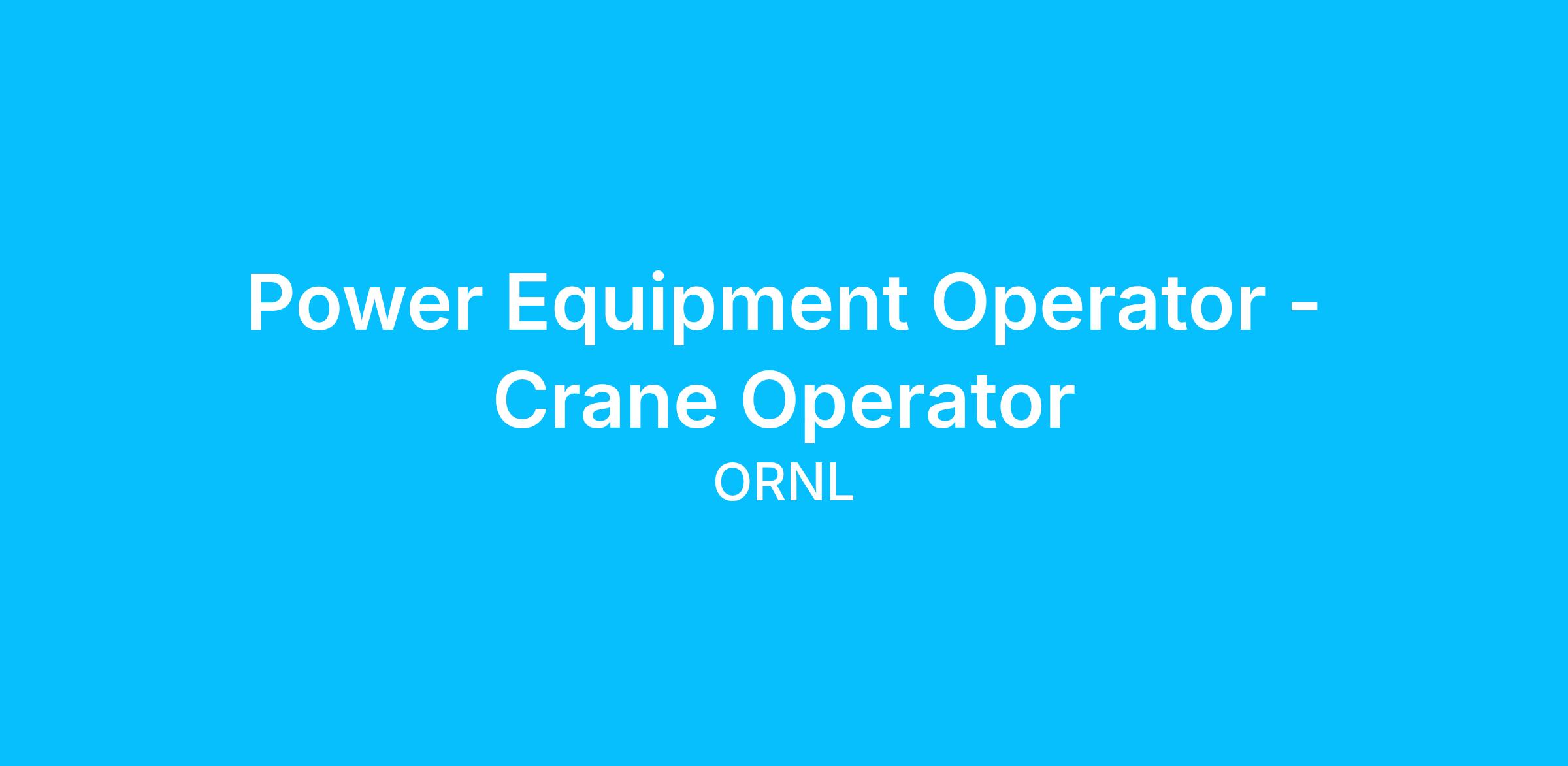 The Oak Ridge National Laboratory has an opening for a Power Equipment Operator – Crane Operator. In this role you will, under limited supervision, operate a variety of equipment used for excavation and hoisting and rigging activities.