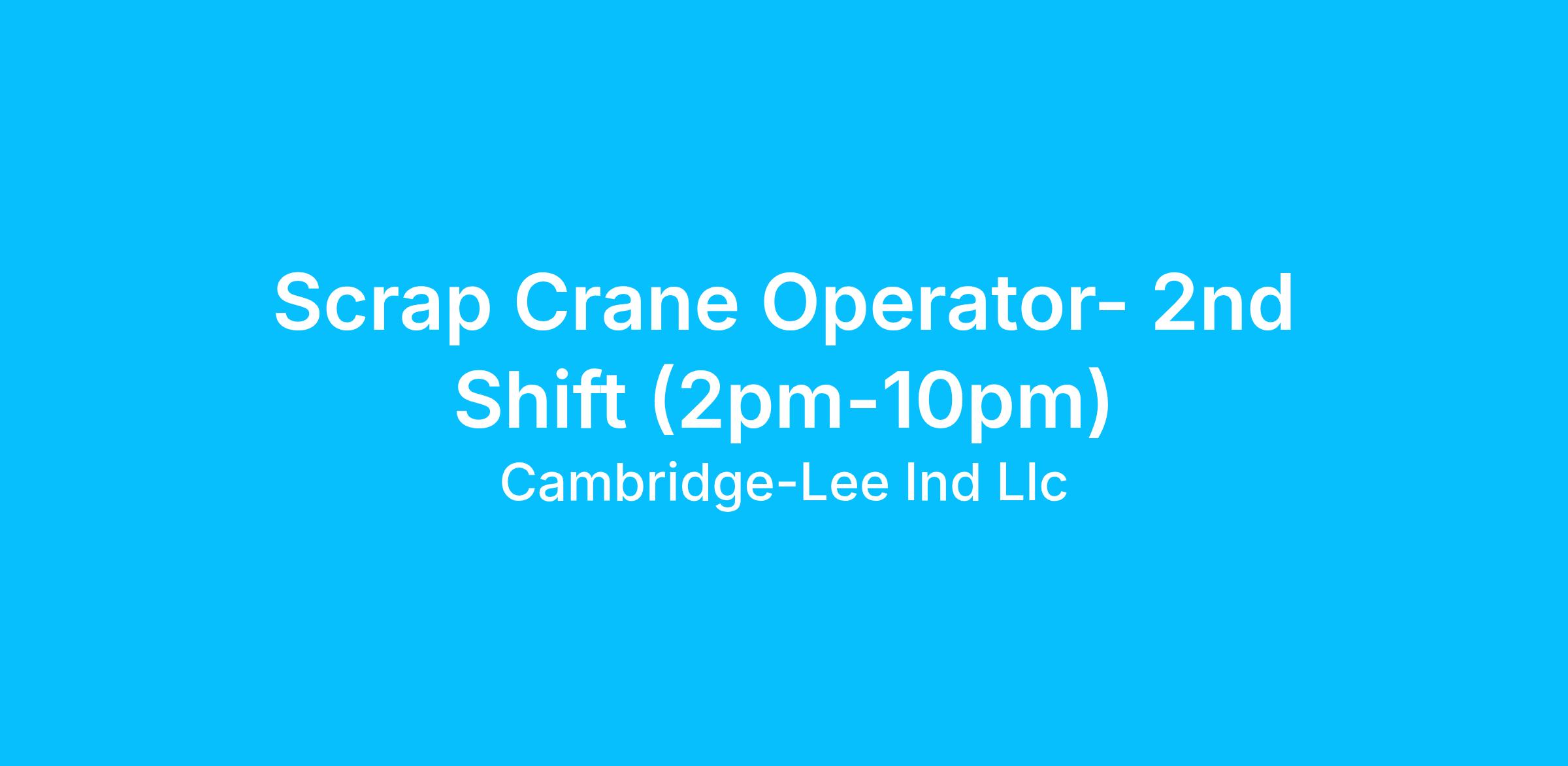 The Scrap Crane Operator will operate the electric traveling overhead crane and any other equipment needed to process scrap in the baling press. (Track loader, wheeled loader)