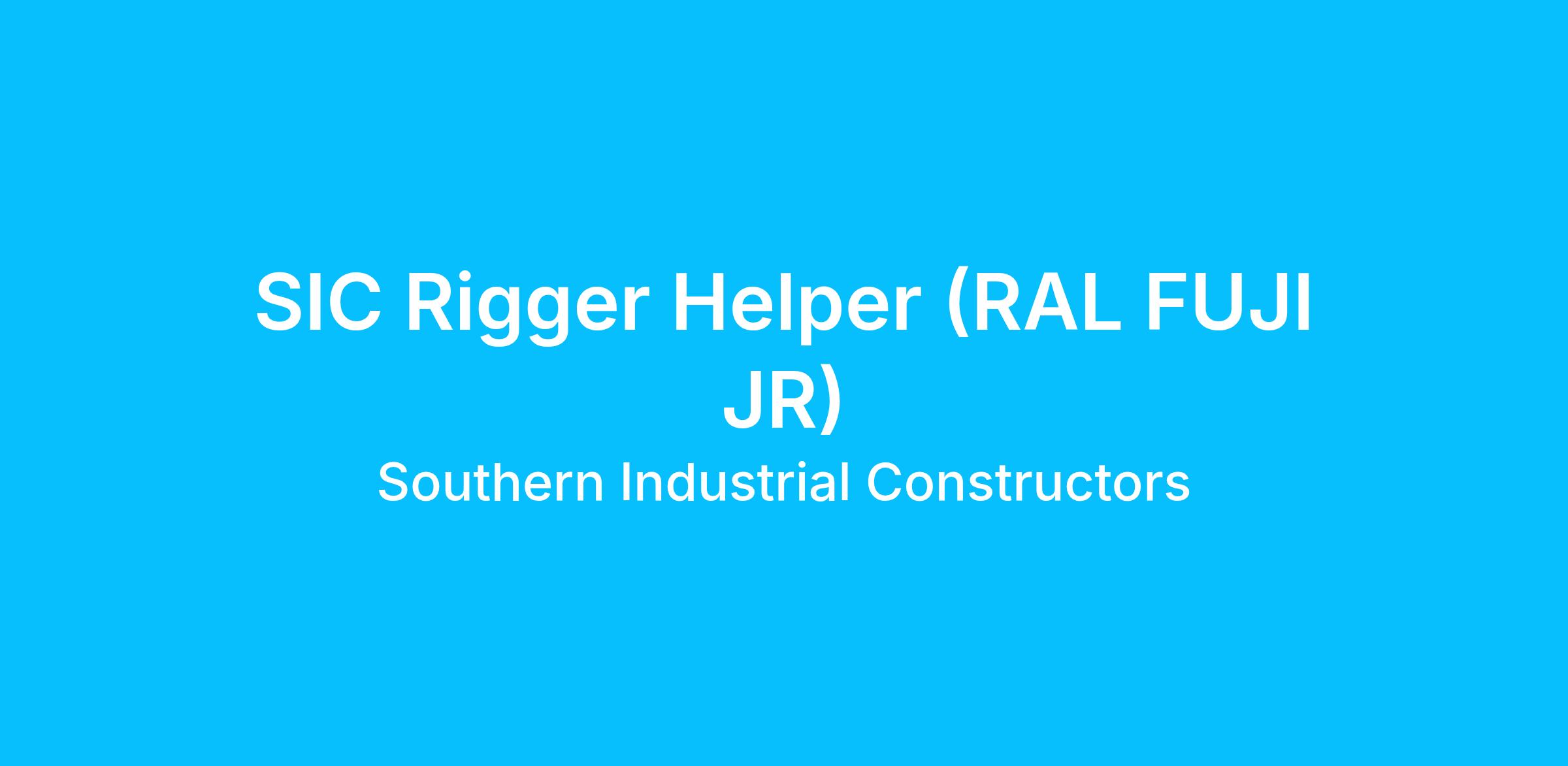 Job Title: SIC Rigger Helper (RAL FUJI JR)